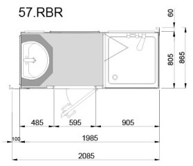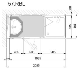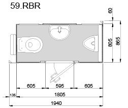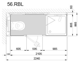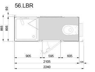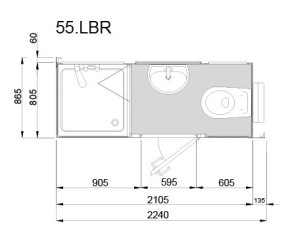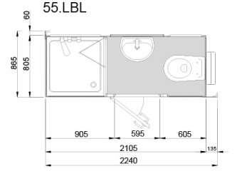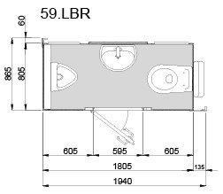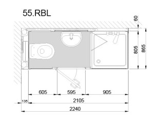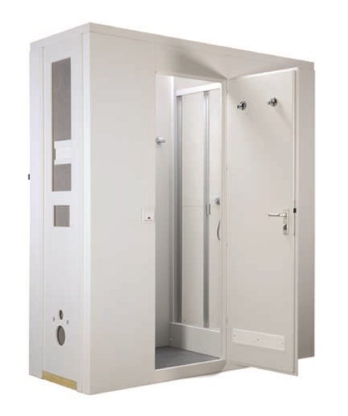 Das Fertigbad Sparta ist ein komplett und hochwertig eingerichtetes Fertigbad mit wandhängendem Keramik-WC und Handwaschbecken sowie Dusche. Ideal bei schmalem, rechteckigem Grundriss.