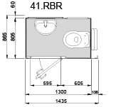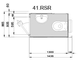 Die WC-Kabine ist ausgestattet mit einem wandhängenden Keramik WC und Handwaschbecken.Der platzsparende rechteckige Grundriss kann passend für die rechte oder linke Raumecke gestaltet werden. Alternativ kann das Handwaschbechen durch eine Waschtisch ersetzt werden.
