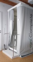 saniComplete bietet auf nur 2 m2 ein voll funktionsfähiges Komplettbad bzw. Ersatzbad. Durch seine leistungsstarke Hebeanlage steht es genau dort, wo es aufgrund einer Sanierung benötigt wird, d.h. in der eigenen Wohnung. Die Wasser- und Energieversorgung sowie Entsorgung von Abwässern des mobilen Komplettbads erfolgen über die üblichen Stromanschlüsse, Wasseranschlüsse sowie Abwasseranschlüsse Ihres Hauses oder Ihrer Wohnung.