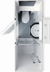 Die Bandbreite geht hier von einem kompletten, mini Fertigbad (elementbauweise, kommt in Einzelteilen) über WC Bausteine und Fertigduschen bis hin zur mobilen Küchen. Voraussetzung ist nur eine ebene Fläche wie z.b. in einem Vorzelt mit Boden also ein trockener Raum.