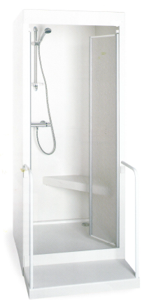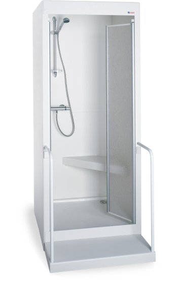 - mit Unterteil, bestehend aus einer ABS-Duschwanne 90 x 90 cm und einem stabilen PUR-Unterbau
