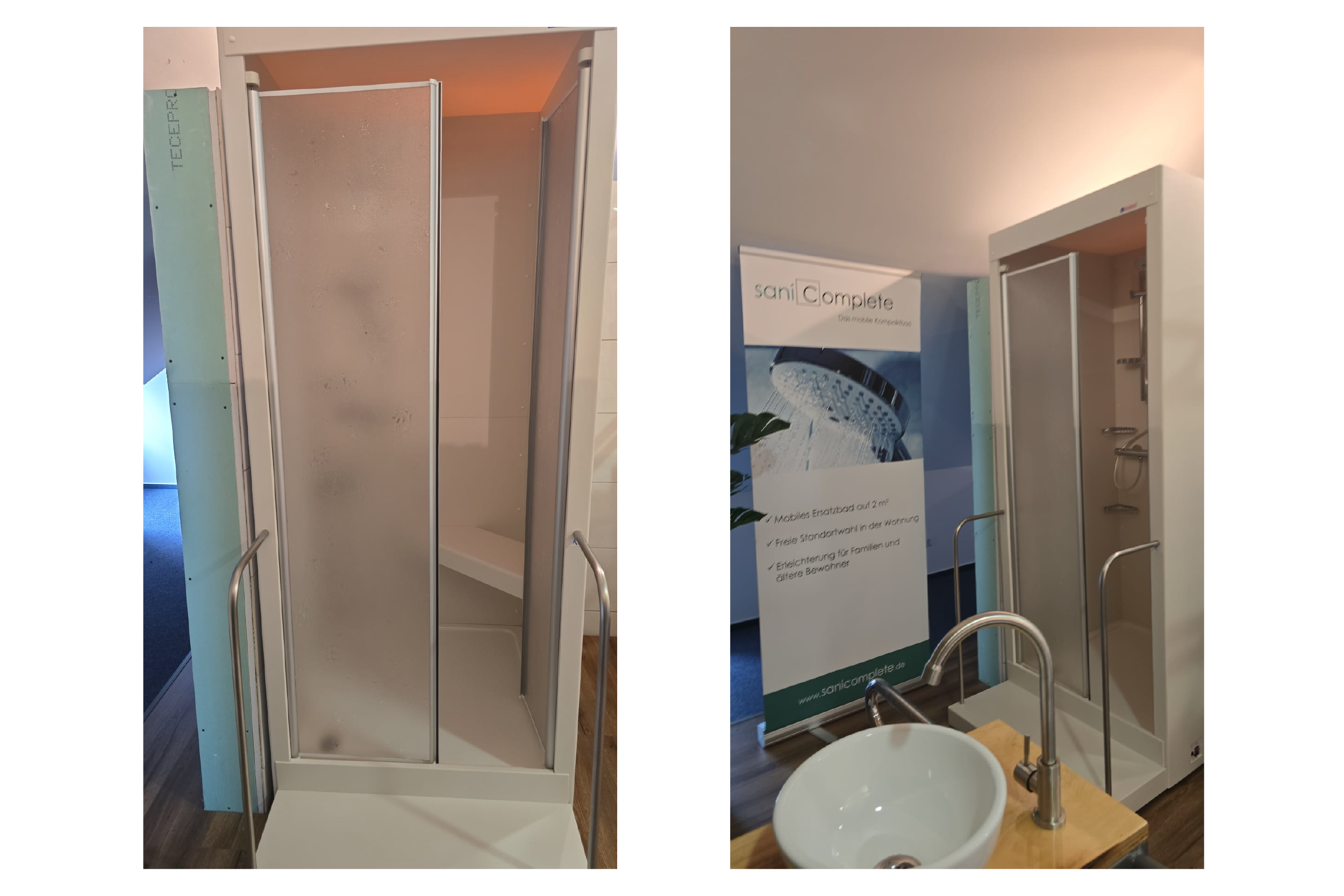 Für den Aufbau bitte Lichte-Raumhöhe ca. 230cm beachten, oder Kabine in Höhe optional kürzen lassen.