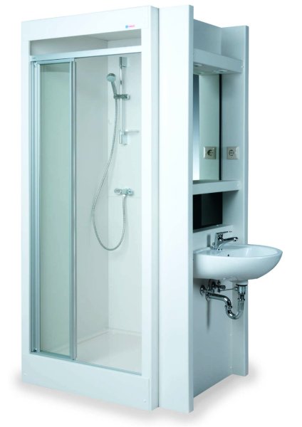 - komplett eingerichtet mit Duschabtrennung, Einhebel-Mischbatterie und Brausegarnitur (Schlauch, verstellbare Handbrause, Seifenschale)